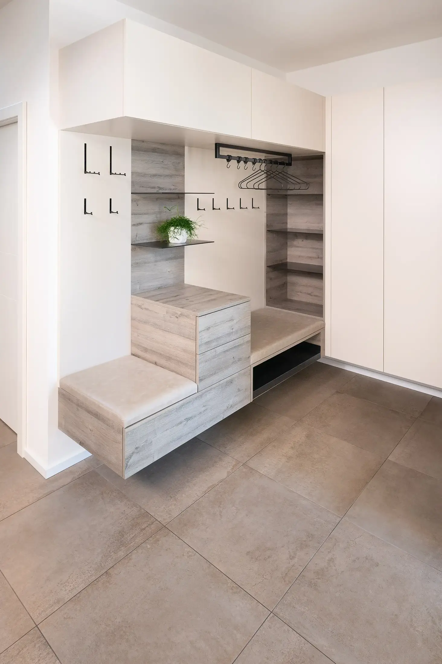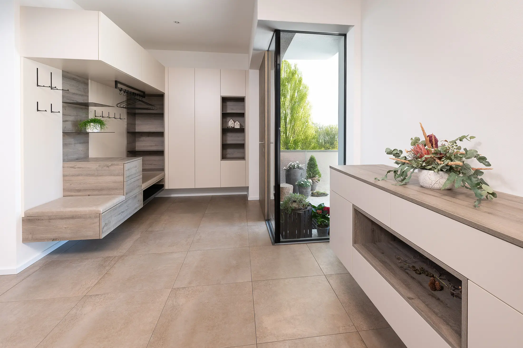 Ob großzügige Garderobe, praktische Schranklösungen oder einladende Sitzmöglichkeiten – wir gestalten Räume, die den Alltag erleichtern und zugleich ein einladendes Ambiente schaffen. So beginnt das Wohlfühlen schon an der Tür.
